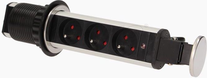 Orno Gniazdo meblowe fi6cm, 3x250V AC wysuwane z blatu z ładowarką USB, blokadą i przewodem 1,8m INOX OR-AE-1350 Wodzisław Śląski
