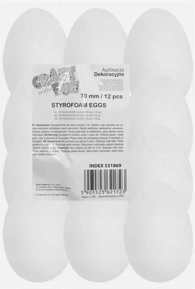 Craft With Fun Ozdoba Dekoracyjna Styropianowe Jajka 70mm 12szt Wielkanoc 531869 Ozdoba styropianowa Jajka od CRAFT WITH FUN daje wiele możliwości. Przy pomocy tego produktu możesz zaprojektować własne ozdoby świąteczne lub dekoracje, idealne do wykonywania wszelkich prac dekoratorskich, jak …
