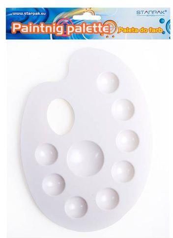 Starpak Paletka Do Farb Biała 236217 Paleta do farb z kolekcji STARPAK dedykowanej dla szkół. Paleta z dużym, wygodnym uchwytem, pozwala na poszukiwanie własnych rozwiązań kolorystycznych i pomoże każdemu młodemu malarzowi w pierwszych próbach artystycznych. Na palecie znajduje się 8 pojemniczków do mieszania farb.