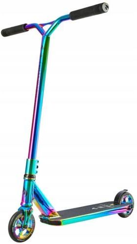 Marka Chilli została założona w 2010 roku w celu opracowania wysokiej klasy hulajnóg freestylowych dla wszystkich grup wiekowych i poziomów umiejętności. HULAJNOGI CHILLI PRO SCOOTERS tworzymy z pasji do hulajnogi wyczynowej. To co wyróżnia hulajnogi chilli pro scooters to jakość wykonania ze szwajcarską precyzją. Każda hulajnoga ma hologram z numerem seryjnym produktu. Jakość zastosowanych komponentów została dopasowana do poziomów zaawansowania riderów, dzieli się na 3 kategorię umiejętności: youngster (początkujący), allstar , riderchoice (pro). HULAJNOGA DLA ŚREDNIOZAAWANSOWANYCH I ZAAWANSOWANYCH REAPER RELOADED FULL NEOCHROME to prawdziwie wszechstronna hulajnoga dla zaawansowanych riderów. Dzięki aluminiowemu deckowi o szerokości 12,5 cm nadaje się szczególnie do grindowania, ale także dla nieco wyższych i starszych użytkowników. Koła z aluminiowym rdzeniem o średnicy 120 mm zapewniają optymalną prędkość do skakania jeszcze wyżej w parku. REAPER RELOADED to idealny połączenie od początkującej do profesjonalnej hulajnogi wyczynowej. Całkowita wysokość hulajnogi to 85 cm. Wskazówka dla kupujących: Kierownica w kształcie litery T powinna znajdować się na wysokości pępka lub nieco powyżej niego, stojąc na hulajnodze. Wysokość całkowita (od ziemi do szczytu kierownicy): 85 cm OGÓLNE INFORMACJE: Kategoria użytkowników: Allstar Poziom: Początkujący: Advanced, Pro Wiek: Od 10 lat PODEST: Materiał: 6061 Aluminium Długość 50 cm Szerokość 12,5 KIEROWNICA: Materiał: 4130 stal chromowana Długość: 60 cm Szerokość: 60 cm Zacisk 3-śrubowy CNC aluminium Miękkie gripy INNE SPECYFIKACJE: Widelec 7003 aluminium Koła 120 mm Mocne osie kół z nakrętkami Łożyska ABEC 9 Kompresja Chilli Spider HIC Waga 4.4 kg Griptape średnioziarnisty