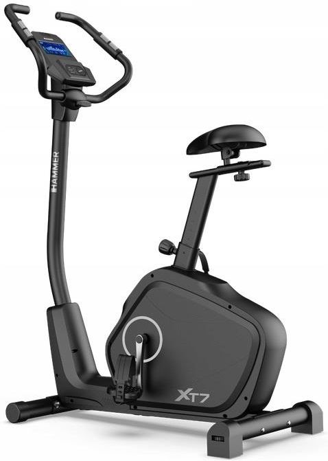 ROWER TRENINGOWY CARDIO XT7 /HAMMER Symbol: 10010 Ean: 4005251100109 Producent: HAMMER Parametry - CECHY DODATKOWE: Antypoślizgowa podstawa, Antypoślizgowy uchwyt, Regulacja siedziska, Rolki transportowe, Wyświetlacz - MAKSYMALNA WAGA UŻYTKOWNIKA: 130 kg - MATERIAŁ DOMINUJĄCY: Stal - WAGA (KG): 29,0 Rower treningowy HAMMER CARDIO XT7 HAMMER CARDIO XT7 to nowoczesny rower stacjonarny zaprojektowany z myślą o wydajnym i bezpiecznym treningu cardio w warunkach domowych. Ergonomiczna konstrukcja, komfortowa pozycja ćwiczeń oraz bogaty zestaw funkcji sprawiają, że jest idealny zarówno dla początkujących, jak i doświadczonych użytkowników. Model ten wspiera poprawę kondycji, redukcję wagi oraz trening bez nadmiernego obciążania stawów, a cicha praca mechanizmu pozwala ćwiczyć o dowolnej porze dnia. Główne zalety Wyjątkowy design: Obudowa z eleganckimi drewnianymi wstawkami nadaje urządzeniu nowoczesny wygląd. Niskie wejście typu „LOW ENTRANCE”: Ułatwia wsiadanie i zsiadanie, szczególnie osobom o ograniczonej mobilności. Najwyższa jakość wykonania: Solidna konstrukcja zapewnia stabilność i długą żywotność urządzenia. Innowacyjna kierownica: Możliwość wielu chwytów dla różnorodności pozycji treningowych. Komfortowa pozycja ćwiczeń: Odpowiednia ergonomia minimalizuje napięcie mięśni i poprawia wygodę podczas długich sesji. Łączność Bluetooth i kompatybilność: Obsługa aplikacji Kinomap, Zwift oraz darmowej aplikacji HAMMER Workouts. Płynna i cicha praca: Precyzyjny układ korbowy gwarantuje bezgłośne działanie i płynne ruchy pedałów. Darmowa aplikacja HAMMER WORKOUTS - znajdź swój idealny trening Aplikacja HAMMER WORKOUTS to źródło regularnie aktualizowanych, inspirujących treningów dostosowanych do Twojego sprzętu fitness. Ćwicz z doświadczonymi trenerami i realizuj swoje indywidualne cele - od wzmacniania mięśni po poprawę kondycji. Sesje trwają od 10 do 50 minut i są dostępne bez dodatkowych opłat abonamentowych. Możesz korzystać z aplikacji na smartfonie, tablecie lub komputerze, mając wszystkie potrzebne narzędzia w jednym miejscu. Komfort i ergonomia - dla każdego użytkownika Rower CARDIO XT7 został zaprojektowany z myślą o wygodzie i łatwej obsłudze. Niska rama umożliwia swobodne wsiadanie i zsiadanie, co jest szczególnie istotne dla osób starszych lub o ograniczonej mobilności. Regulowane w poziomie siodełko pozwala na idealne dopasowanie pozycji, a wąski rozstaw pedałów (Q-faktor 22 cm) wspiera naturalny, zdrowy ruch bioder i kolan. Wielopozycyjne uchwyty kierownicy umożliwiają zmianę chwytu i utrzymanie prawidłowej postawy w trakcie ćwiczeń. Cicha i precyzyjna praca mechanizmu Zaawansowany system oporu magnetycznego gwarantuje płynność ruchu i stabilność nawet przy dużym obciążeniu. Dzięki praktycznie bezgłośnemu działaniu możesz trenować zarówno w ciągu dnia, jak i wieczorem, bez zakłócania spokoju domowników. Regulacja oporu jest możliwa w 16 poziomach lub poprzez precyzyjne ustawienie mocy w zakresie od 25 do 350 Watt. Nowoczesne funkcje i wsparcie aplikacji treningowych CARDIO XT7 został wyposażony w duży, czytelny wyświetlacz LCD z niebieskim podświetleniem, który prezentuje kluczowe dane treningowe - czas, dystans, RPM, tętno oraz spalone kalorie - w sposób przejrzysty i łatwy do odczytania. Wbudowany moduł Bluetooth umożliwia połączenie z aplikacjami takimi jak Kinomap, Zwift czy HAMMER Workouts, dając dostęp do realistycznych tras, wirtualnych trenerów oraz treningów grupowych. Obsługa urządzenia jest intuicyjna dzięki praktycznemu pokrętłu Push Turn. Szybka i łatwa regulacja ustawień Mechanizm szybkiego zwalniania umożliwia błyskawiczną regulację wysokości siodełka i kierownicy bez użycia narzędzi czy skomplikowanych ustawień. Pozwala to w kilka sekund dopasować rower do wzrostu i preferencji użytkownika, zapewniając optymalną pozycję podczas ćwiczeń. Precyzyjne poziomowanie dla pełnej stabilności Regulacja poziomu w rowerze treningowym CARDIO XT7 umożliwia idealne dopasowanie ergometru do podłoża, gwarantując stabilność i bezpieczeństwo nawet podczas najbardziej intensywnych sesji. Niezależnie od tego, czy podłoga jest równa czy lekko nierówna, system poziomowania zapewnia pewne i komfortowe warunki do ćwiczeń. Komfortowe, profilowane siodełko Ergonomiczne żelowe siodełko o profilowanym kształcie zostało zaprojektowane z myślą o wygodzie podczas długich treningów. Możliwość regulacji w pionie i poziomie pozwala precyzyjnie dopasować ustawienie do indywidualnych potrzeb, wspierając prawidłową postawę i komfort ćwiczeń. Profesjonalny sprzęt do codziennych treningów HAMMER CARDIO XT7 to propozycja dla osób poszukujących bezpiecznego, funkcjonalnego i trwałego rozwiązania do treningu cardio w domu. Bez względu na poziom zaawansowania, wiek czy cel treningowy - ten ergometr łączy wygodę, nowoczesne technologie i jakość klasy premium. Ogólne informacje Marka: HAMMER Nr katalogowy 10010 Kolor: czarny Materiał: stal Funkcje komputera Sterowanie watami: Tak Wyświetlacz: LCD z niebieskim podświetleniem Multimedia: Bluetooth, uchwyt na tablet Pomiar tętna: Czujniki dłoni Kompatybilne aplikacje: Kinomap, Zwift Obsługa: Pokrętło „Push Turn#8221; (naciśnij i przekręć) Odbiornik pasa piersiowego: 5 kHz (kompatybilny z pasami telemetrycznymi) Wyświetlane dane: dystans, prędkość, tętno, spalanie kalorii, liczba obrotów na minutę (RPM), moc (Watt), poziom oporu, czas, wskaźnik tętna Liczba stałych pól wyświetlacza: 6 (stała prezentacja 6 parametrów treningowych) Liczba programów treningowych: 24 Programy sterowane tętnem: 5 Regulacja granicy tętna: ustawienie górnej granicy tętna Program manualny: 1 Użytkownicy (profile indywidualne): 4 Układ napędowy i hamulcowy System napędu: pasek rowkowany Zakres obciążenia: 16 poziomów Regulacja o