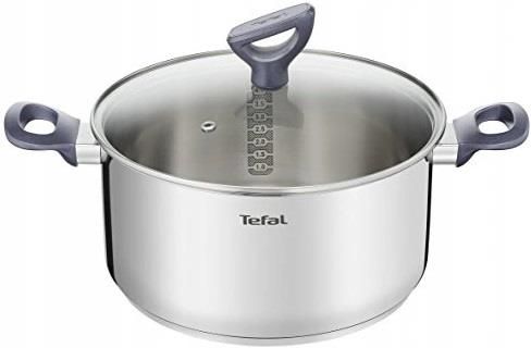 TEFAL Daily Cook G7124614 24cm ODPOWIEDNIO GRUBY SPÓD Garnki, rondel i patelnia wchodzące w skład prezentowanego kompletu mają grube, akumulacyjne dna, które zapewniają właściwą dystrybucję ciepła. Składniki Twoich dań smażą się lub gotują równomiernie, uzyskując idealną teksturę. WYJĄTKOWY UCHWYT POKRYWKI Kolekcja naczyń Tefal Daily Cook wyróżnia się nietypową konstrukcją uchwytu zamocowanego na pokrywkach. Jego ścięty, ukośny kształt umożliwia wygodne odkładanie pokrywki na rączkę garnka lub na blat, zwiększając Twój komfort pracy. ŁATWE CZYSZCZENIE Dzięki zastosowaniu gładkiej stali nierdzewnej oraz nieprzywierających powłok wszystkie naczynia oraz akcesoria kuchenne można łatwo wyczyścić. Brud nie przywiera nadmiernie do ich powierzchni i daje się łatwo zmyć. BEZPIECZEŃSTWO PRZEDE WSZYSTKIM Aby zadbać o Twój komfort i bezpieczeństwo, naczynia wyposażono w stabilne, nienagrzewające się uchwyty. Rączki zostały wyprofilowane w taki sposób, by pewnie leżały w dłoni.