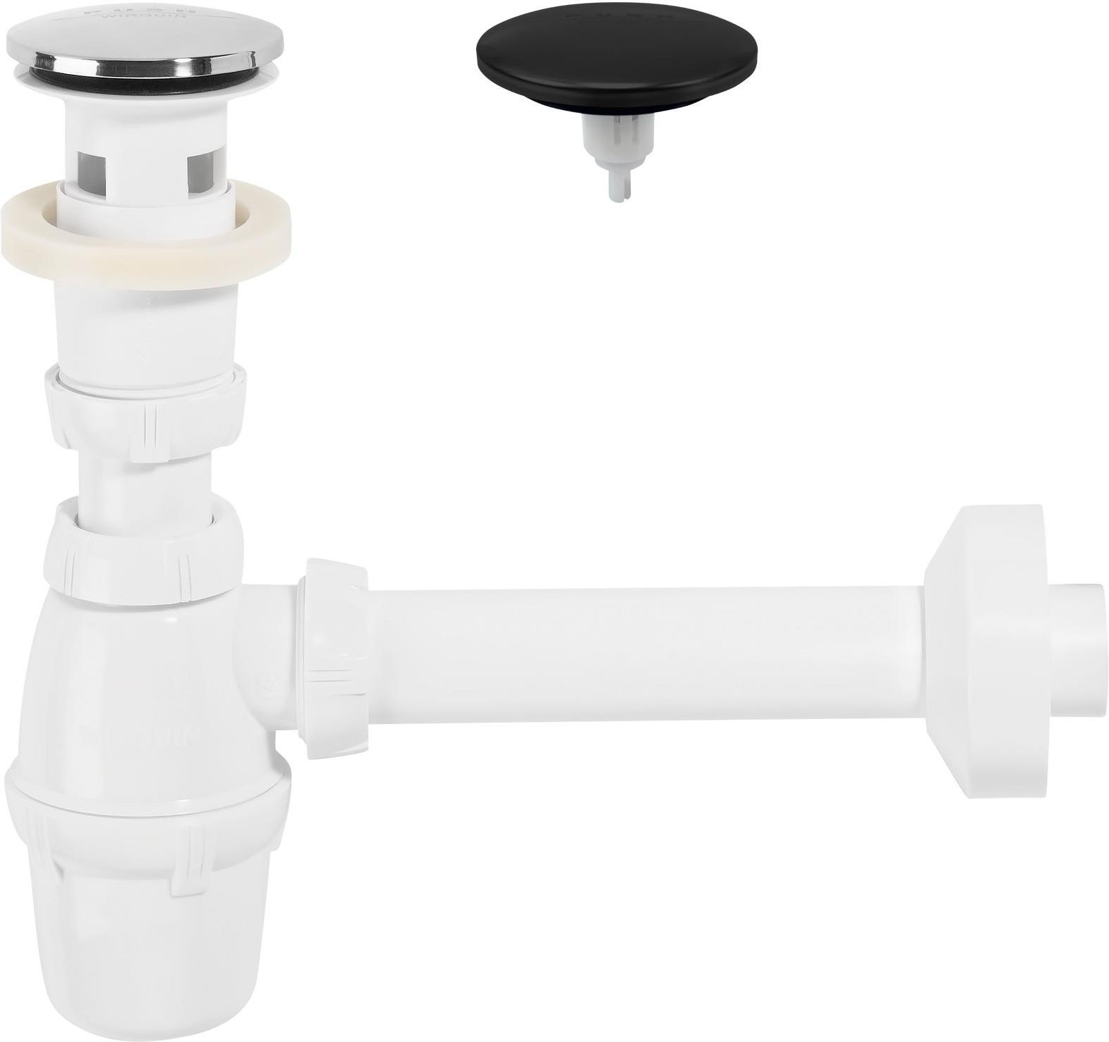 SYFON DO UMYWALEK Z PRZELEWEM WEWNĘTRZNYM 2 KORKI CHROM + CZARNY 1 1/4" BUTELKOWY PASUJE DO UMYWALEK Z PRZELEWEM WEWNĘTRZNYM Średnica 1 1/4" x 32mm regulowana wysokość przyłącze 32mm Maksymalna temperatura robocza (w °C)90 Kolor syfonu : biały Kolor korków : chrom polerowany + czarny mat Materiał wykonania odpływu plastik Elastyczne uszczelki z wysokiej jakości elastomeru plastycznego Antypoślizgowe nakrętka
