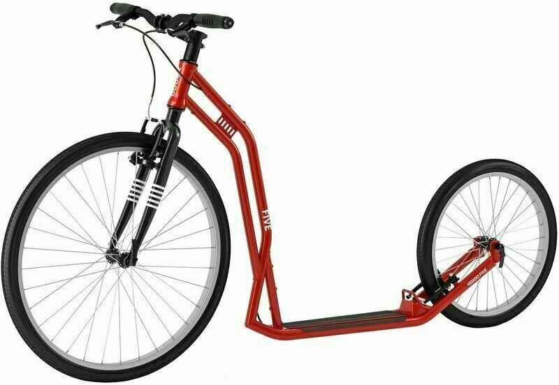 To jest automatyczne tłumaczenie wygenerowane przez software:Numer Pięć to nowy standard dla uniwersalnie dojrzałej hulajnogi podróżnej z dużymi kołami, niezbędnym wyposażeniem i wyższą niezawodnością marki Yedoo. Na stalowych mięśniach stalowej ramy, która waży około dziesięciu kilogramów, nie ma nic więcej. Regulowany tylny widelec umożliwia wygodne i szybkie ślizganie się tuż nad powierzchnią, a na każdym metrze docenisz, że aluminiowe piasty kół z łożyskami przemysłowymi mają niższy opór toczenia. To nie prowadzi do zwarcia, numer 5 naprawdę żyje. Cechy: Limit ładowania: 130 kg / 287 funtów Min. wzrost jeźdźca: 150 cm / 59 cali Wiek jeźdźca: 12+ lat Rama: stal YEDOO Hi-ten Widelec: stal YEDOO Hi-ten Trzon: stop Kierownica: stop PG Uchwyty: ergonomiczne Końce pręta: opcjonalnie Zestaw słuchawkowy: NECO ze stopu 1 1/8" częściowo zintegrowany AHEAD Dźwignie hamulca: 2x SPARKLE ze stopu Hamulce (przód/tył): 2x „V” SPARKLE ze stopu Koła: 26"/20" Obręcze: stop HJC Piasty: stop NOVATEC Szerokość piasty (przód/tył): 100 / 74 mm // 3,9 / 2,9 cala Łożyska: przemysłowe Dźwignie szybkozamykacza (przód/tył): Tak / Tak Opony (przód/tył): KENDA 26x1,75/20x1,75 Maks. ciśnienie (przód/tył): 4,6 bar / 4,6 bar Przygotowanie do uchwytu na butelkę: 2x Podnóżek: 40 cm / 15,7 cala Wysokość kierownicy: 91 - 97 cm / 35,8 - 38,2 cala Szerokość kierownicy: 64 cm / 25,2 cala Wysokość jazdy (pozycja wyższa/niższa)*: 5,0 / 7,0 cm // 2,0 / 2,8 cala Odległość między podnóżkiem a podłożem (pozycja wyższa/niższa)*: 7,8 / 9,8 cm // 3,1 / 3,9 cala Miejsce dla jeźdźca: 68 cm / 26,8 cala *Tolerancja: +-0,2 cm