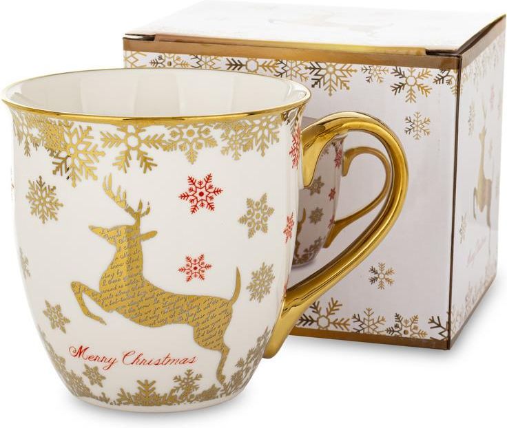 171950 Porcelanowy kubek - 560 ml Od FotoABC - autoryzowanego dystrybutora Elegancki, porcelanowy kubek z kolekcji Alpina. Charakterystyka Oryginalny, porcelanowy kubek ozdobiony świątecznym motywem i delikatnym, złotym ornamentem Może pełnić funkcję dekoracyjną i użytkową Dopuszczony do kontaktu z żywnością Pojemność: ok. 560 ml Średnica: 11 cm Szerokość z uchem: 15 cm Wysokość: 11 cm Materiał: wysokiej jakości porcelana Waga: ok. 0,5 kg Rzeczywisty odcień kolorów może się różnić ze względu na indywidualne ustawienia monitora Ze względu na złocenia nie należy myć w zmywarce Nie używać w kuchence mikrofalowej Kubek w oryginalnym opakowaniu - doskonale nadaje się na elegancki prezent. wymiary opakowania: 13,5 x 11,5 x 11,5 cm