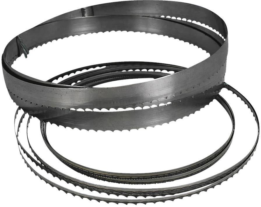 Ostrze z hartowanymi ostrzami zębów do pilarki taśmowej, przeznaczone do cięcia drewna i metali miękkich, takich jak aluminium i miedź.