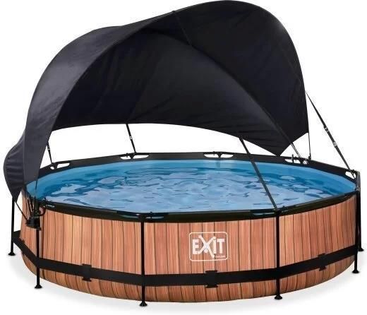 EXIT Basen drewniany ø360x76cm z zadaszeniem i pompą filtrującą - brązowy. Basen EXIT Wood ø360x76cm to okrągły basen ramowy o drewnianym wyglądzie. Basen zawiera pompę filtrującą oraz zadaszenie, które latem ochroni Cię przed słońcem. Szukasz zabawnego, ale także wyjątkowego i wysokiej jakości …
