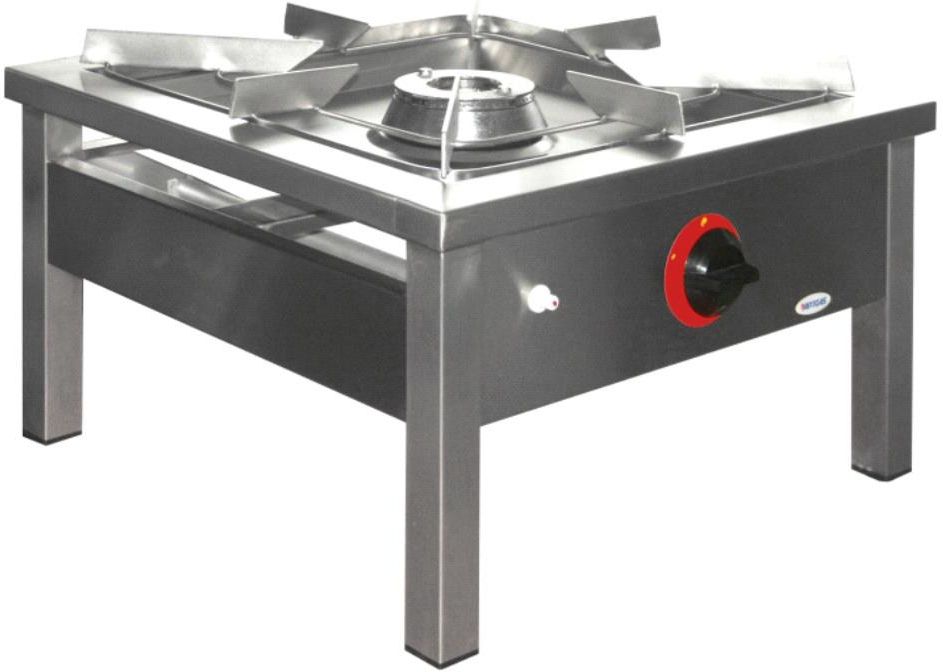 Taboret gazowy TG-110 o mocy palnika 8 kW wykonany ze stali nierdzewnej. Przeznaczony do profesjonalnej gastronomii. Konstrukcja taboretu pozwala na gotowanie na nim dużych ilości potraw w naczyniach o bardzo dużej pojemności – do 100 l bez konieczności podnoszenia ich na dużą wysokość. Maksymalne obciążenie palnika wynosi 100 kg. Taboret gazowy wyposażono w zapalacz piezoelektryczny ułatwiający obsługę urządzenia. Zawór odcinający dopływ gazu w przypadku zaniku płomienia sprawia, że taboret gazowy jest urządzeniem bezpiecznym w eksploatacji. Zastosowanie w taborecie grzewczym nowoczesnych palników dwukoronowych (dwa pierścienie ognia) równomiernie ogrzewających dno naczynia znacznie podnosi efektywność zużycia gazu, a tym samym zwiększa szybkość gotowania. Wyjmowana niecka podpalnikowa znacznie ułatwia utrzymanie czystości. Ruszt emaliowany: Uwaga! Przy zastosowaniu dysz na gaz ziemny G20 moc grzewcza palnika wynosi 8 kW. Przy zastosowaniu dysz na gaz płynny propan-butan moc grzewcza palnika wynosi 7,2 kW. Uwaga: Prosimy o wybranie rodzaju gazu zasilającego ze względu na montowaną w urządzeniu dyszę.Towar na zamówienie