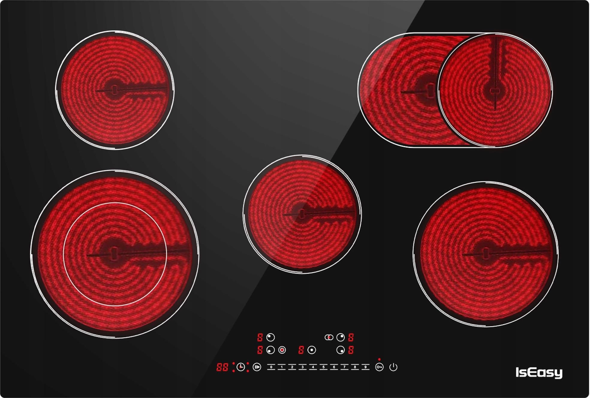 Płyta Ceramiczna Kuchenka Elektryczna Iseasy Lt5-04 5 Stref Grzewczych Producent: IsEasy Kod Produktu: LT5-04 Specyfikacja Producent: IsEasy Model: IsEasy LT5-04 Liczba stref grzewczych: 5 (2x 1200 W (15,5 cm), 1x 1800 W (19 cm), 1x 2000 W (1100+900 W, 15+25,5 cm), 1x 2400 W (1200+1200 W, 13,5+22 cm) Sterowanie: Dotykowe Poziomy mocy: 9 Timer: 99 minut Wymiary: 77 cm x 52 cm Montaż: Wbudowany (74 x 49 cm) Zasilanie: 220-240 V, 40 A Funkcje bezpieczeństwa: Blokada rodzicielska, wskaźnik ciepła resztkowego, automatyczne wyłączanie Płyta ceramiczna/elektryczna IsEasy LT5-04 Płyta IsEasy LT5-04 to doskonałe rozwiązanie dla kulinarnych entuzjastów, którzy oczekują maksymalnej funkcjonalności i wygody w kuchni. Wyposażona w pięć stref grzewczych o różnej mocy i średnicy, pozwala na jednoczesne gotowanie wielu potraw, oszczędzając czas i energię. Elegancki design, nowoczesna technologia i wysoka wydajność sprawiają, że IsEasy LT5-04 jest idealnym wyborem dla każdej kuchni. Pięć stref grzewczych do różnorodnych zadań Płyta oferuje pięć stref grzewczych o mocach od 1200 W do 2400 W. Dzięki różnym średnicom i możliwością podwójnej mocy, możesz precyzyjnie dostosować strefę do wielkości naczynia i rodzaju potrawy. Strefa o mocy 2400 W (z możliwością łączenia dwóch obwodów) sprawdzi się idealnie do szybkiego smażenia lub gotowania w dużych garnkach. Inteligentne sterowanie i bezpieczeństwo Panel dotykowy z 9 poziomami mocy umożliwia łatwe i precyzyjne ustawienie temperatury dla każdej strefy. Funkcje takie jak blokada rodzicielska, wskaźnik ciepła resztkowego oraz automatyczne wyłączanie gwarantują bezpieczeństwo użytkowania, co czyni płytę idealnym wyborem dla rodzin z dziećmi. Wydajność i cicha praca Dzięki zaawansowanemu systemowi chłodzenia i niskopoziomowemu hałasowi płyta działa wydajnie i nie zakłóca codziennych obowiązków. Idealnie sprawdzi się w kuchniach otwartych na salon, gdzie cisza i estetyka mają kluczowe znaczenie. Łatwość utrzymania czystości Szklana powierzchnia płyty nie tylko świetnie wygląda, ale także ułatwia utrzymanie czystości. Po zakończeniu gotowania wystarczy przetrzeć ją wilgotną ściereczką, by pozostała jak nowa. Uniwersalność zastosowania Płyta IsEasy LT5-04 jest kompatybilna z większością naczyń kuchennych, takich jak stal nierdzewna, ceramika, emaliowane garnki czy żeliwne patelnie. Nie musisz martwić się o wymianę wyposażenia kuchni – urządzenie dostosuje się do Twoich potrzeb.