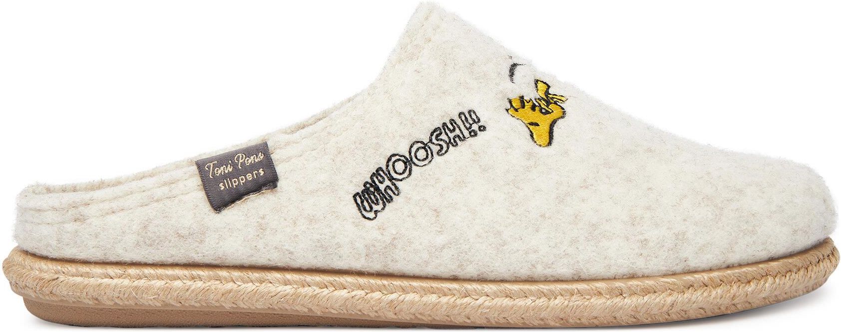 Kapcie hiszpańskiej marki Toni Pons w kolorze ecru z kolekcji Snoopy. Cholewka oraz wyściółka wykonane z filcu. Na cholewce postać Snoopy'ego. Podeszwa elastyczna, antypoślizgowa o grubości około 1 cm - łączy gumę z jutowym oplotem nadając swobodny i oryginalny wygląd. Wkładka wyjmowana, z …
