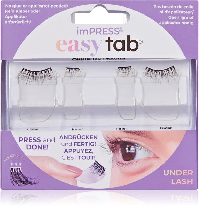 KISS imPRESS easy tab, 4 szt., Sztuczne rzęsy dla kobiet, Natura nie obdarzyła Cię rzęsami, jakich pragniesz? Przedłużenie ich i nadanie im wyrazistego wyglądu nie musi być już tylko marzeniem. Sztuczne rzęsy KISS imPRESS easy tab zapewnią dramatyczny i uwodzicielski wygląd bez konieczności aplikacji wielu warstw tuszu i umawiania się na przedłużanie – możesz to zrobić szybko i łatwo w zaciszu własnego domu. Ciesz się niezwykłą długością, objętością i gęstością, kiedy tylko chcesz. Właściwości: sprawiają naturalne wrażenie rzęsy sprawiają wrażenie dłuższych i gęstszych są niezwykle lekkie i praktycznie niewyczuwalne na powiekach odpowiednie ułożenie włosków zapewnia naturalny efekt bardzo łatwa aplikacja