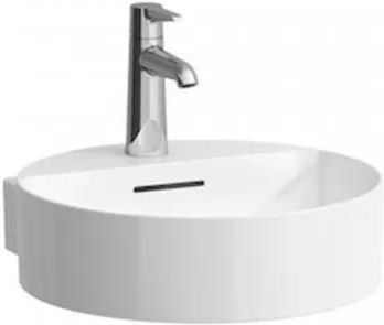 szerokość: 40 cm głębokość: 42,5 cm wysokość: 15,5 cm szlifowany spód umożliwia postawienie na blacie sposób montażu: do ściany, na blacie z otworem na baterię z otworem przelewowym z kompletnie szkliwionym systemem przelewowym położenie niecki: na środku wymagany montaż do ściany zawiera zestaw montażowy do blatu i szablon do wycięcia w blacie materiał: SaphirKeramik powłoka LCC - Laufen Clean Coat Active kolor: biały połysk