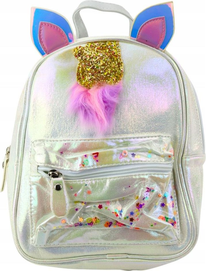 Plecak Dziecięcy Z Rogiem Jednorożca Do przedszkola szkoły Tęcza 25cm 4,5L 5905991041375 PLECAK DZIECIĘCY PERŁOWY Z ROGIEM JEDNOROŻCA Perłowy plecak z jednorożcem to wyjątkowa propozycja dla dziewczynek, które kochają błyszczące dodatki i magiczne wzory. Plecak wyróżnia się piękną, połyskującą powierzchnią w kolorze perłowej bieli, a jego uroczy wygląd dopełniają złoty róg, różowo-fioletowy pompon oraz uszka 3D, które nadają mu charakterystycznego, bajkowego stylu. To akcesorium, które nie tylko zachwyca wyglądem, ale również oferuje funkcjonalność. Główna komora bez problemu pomieści wszystko, co potrzebne do przedszkola lub na wycieczkę – śniadaniówkę, bidon, ulubioną zabawkę czy książeczkę. Przednia kieszonka z przezroczystym okienkiem wypełnionym kolorowym konfetti to nie tylko dekoracja, ale i element zabawy – drobinki poruszają się w trakcie noszenia, co sprawia dzieciom mnóstwo frajdy. Dzięki kompaktowym wymiarom 25 × 20 × 9 cm i pojemności ok. 4,5 litra plecak doskonale sprawdza się u dzieci przedszkolnych i wczesnoszkolnych. Regulowane szelki oraz uchwyt do zawieszenia gwarantują wygodę noszenia. Plecak wykonany jest z trwałego, łatwego w czyszczeniu materiału syntetycznego, który wytrzymuje codzienne użytkowanie i drobne zabrudzenia. To praktyczne i efektowne rozwiązanie do szkoły, na spacery, zajęcia dodatkowe lub jako prezent – zachwyci każdą małą miłośniczkę jednorożców. SPECYFIKACJA Rodzaj: plecak dziecięcy Wzór: jednorożec 3D Kolor: perłowy / biały połysk Wymiary: 25 × 20 × 9 cm Pojemność: ok. 4,5 litra Materiał: połyskujące tworzywo sztuczne Kieszenie: komora główna + kieszonka przednia z konfetti Zapięcie: zamek Szelki: regulowane ZAWARTOŚĆ ZESTAWU Plecak jednorożec 3D (perłowy) Certyfikat: CE