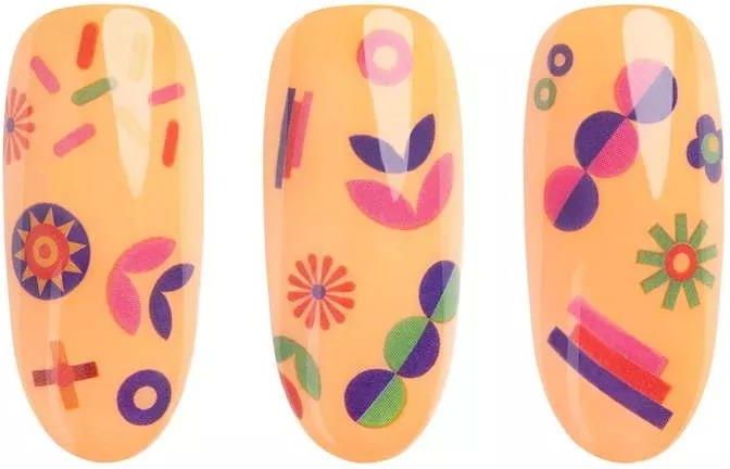 Naklejki wodne NN40 – prosty i szybki sposób na stylizację! O produkcie Naklejki wodne NN40 kryją 55 multikolorowych wzorów na lato. Są doskonałe, gdy chcesz stworzyć niebanalne stylizacje, jak ręcznie malowane. Naklejki wodne na paznokcie zostały tak zaprojektowane, by można było łatwo przenieść je na płytkę i uzyskać piękne zdobienie na manicure. Są niezwykle cienkie, co sprawia, że nie pogrubiają paznokcia i nie odstają. Najnowsze naklejki, zaprojektowane przez zespół NEONAIL, dostępne są w wyjątkowych wzorach, inspirowanych żywymi kolorami i letnimi formami. To jedne z najbardziej kolorowych i wyrazistych naklejek wodnych w ofercie. Niezwykle oryginalne, charakterystyczne i stylowe! Obok takiego manicure nie można przejść obojętnie. Naklejki są umieszczone na arkuszu, na którym znajdują się różnokolorowe wzory i motywy, pozwalające stworzyć przyciągające uwagę stylizacje. Naklejki wodne NN39 umożliwiają błyskawiczną stylizację z niezwykle naturalnym efektem. Co zyskujesz? Naklejki wodne NN40 w wyrazistych kolorach to sposób na urozmaicenie każdej stylizacji. Już nie musisz praktykować malowania na paznokciach, by tworzyć spektakularne efekty! Dzięki naklejkom wodnym uzyskasz: przepiękne, oryginalne i wyjątkowe stylizacje – uzyskasz je nawet, jeśli jesteś początkującą stylistką czy sama wykonujesz swój manicure; błyskawiczny manicure – nie trać czasu na żmudne malowanie i zyskaj dodatkową chwilę na przyjemności! Wystarczy, że zaaplikujesz naklejkę na warstwę dyspersyjną lakieru lub topu hybrydowego; piękne wzory jak ręcznie malowane – naklejki cechuje bardzo cienka struktura. Ich brzegi są niewidoczne w stylizacji, dlatego wyglądają, jakby były malowane ręcznie; mnóstwo różnych motywów – w arkuszu znajdują się liczne zdobienia, które możesz wykorzystać, kiedy chcesz! Są one spójne stylistycznie, co pozwala tworzyć ciekawe kompozycje; piękne stylizacje na obu rękach jednocześnie – od teraz stworzysz precyzyjne wzory na każdej dłoni – nieważne, czy jesteś prawo-, czy leworęczna! Naklejki wodne można stosować nie tylko z lakierami hybrydowymi, ale także z lakierami klasycznymi, żelami UV i akrylożelami. To bardzo uniwersalny produkt, którym ozdobisz każdą stylizację! Zainspiruj się! Naklejki wodne w wyrazistych kolorach vintage możesz łączyć z różnymi odcieniami lakierów hybrydowych czy klasycznych. Idealnie wpasowują się stylistyką w nową kolekcję letnich lakierów hybrydowych – Born to Win! Idealną bazą dla tych naklejek są lakiery w kolorach lata! Zrelaksuj się, łącząc barwne wzory z hybrydą Set To Empower i spójrz na życie przez różowe okulary! Chcesz trochę zaszaleć? Ozdób naklejkami termiczny lakier hybrydowy Winning Spirit i patrz, jak róż zmienia się w pomarańcz pod wpływem temperatury! Twórz cudowne kompozycje z naklejkami wodnymi i bądź dumna ze swojego przyciągającego uwagę manicure!
