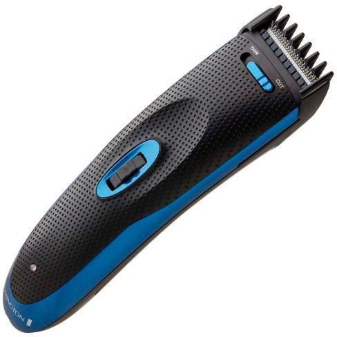 Zestaw do strzyżenia włosów HC910 The Works Grooming Kit 3 elementy Bezprzewodowa maszynka do strzyżenia włosów Trymer precyzyjny oraz do włosków w nosie Ostrza ze stali nierdzewnej Zestaw do strzyżenia włosów z trymerem do włosków w nosie, maszynką do strzyżenia precyzyjnego oraz maszynką do strzyżenia włosów. Zestaw do strzyżenia włosów HC910 The Works Grooming Kit marki Remington zawiera wszystkie niezbędne przyrządy, które pozwolą Ci zadbać o fryzurę i brodę oraz pozbyć się niechcianych włosków. W zestawie znajdują się dwie regulowane nasadki grzebieniowe z 18 ustawieniami długości cięcia. Maszynki można używać bez przewodu, a pełne naładowanie akumulatora wystarcza na 45 minut strzyżenia. Maszynka do strzyżenia włosów oferująca 45 minut bezprzewodowej pracy Maszynka do strzyżenia z wbudowaną funkcją cieniowania i dwoma regulowanymi nasadkami grzebieniowymi zapewnia łatwy wybór odpowiedniej długości cięcia w zakresie 3–30 mm. Ostrza wykonano ze stali nierdzewnej. Strzyżenie jest możliwe zarówno po podłączeniu, jak i odłączeniu przewodu. Akumulator zapewnia do 45 minut pracy. Później wystarczy podłączyć przewód, aby strzyc dalej. Maszynka do strzyżenia precyzyjnego Trymer doskonały do stylizowania i przycinania brody. Użyj maszynki do strzyżenia precyzyjnego bez nasadki grzebieniowej, aby wystylizować bokobrody czy linie i krawędzie brody. Dołączona nasadka grzebieniowa umożliwia utrzymanie zarostu w odpowiedniej długości. Trymer jest zasilany dwiema bateriami AA (do kupienia osobno). Trymer do włosków w nosie Do skutecznego usuwania niechcianych włosków! Trymer do włosków w nosie jest zasilany dwiema bateriami AA (do kupienia osobno).