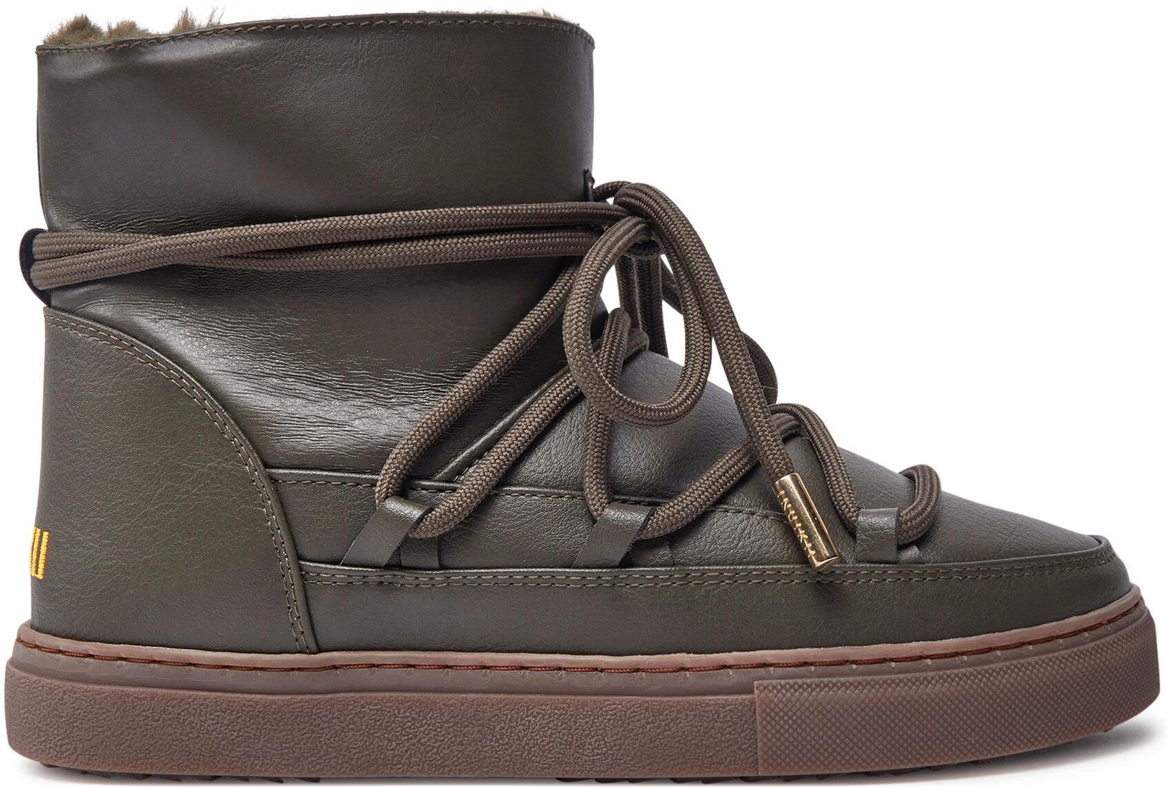 Inuikii Śniegowce Grape 05000-003 Zielony Śniegowce Inuikii to idealne połączenie wygody i modnego wyglądu. Wykonane z trwałej imitacji skóry licowej, oferują wsuwaną konstrukcję z usztywnionym okrągłym noskiem, który zapewnia dodatkową ochronę. Wnętrze wyłożone miękkim, naturalnym futerkiem otula stopy ciepłem, a usztywniony zapiętek i gumowa podeszwa gwarantują stabilność i komfort noszenia. Grube sznurówki nie tylko dodają stylu, ale także zapewniają doskonałe dopasowanie, dzięki czemu te buty sprawdzą się zarówno w mieście, jak i na zaśnieżonych ścieżkach.