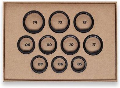 Rozmiary Ultrahuman Ring Air Kit mogą różnić się od standardowych rozmiarów pierścionków, więc znajdź odpowiedni rozmiar dzięki zestawowi do dobierania rozmiarów. Wewnątrz opakowania znajdziesz 10 różnych rozmiarów plastikowych pierścionków od rozmiaru 5 do rozmiaru 14 , które są wierną kopią prawdziwych pierścionków.