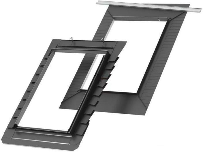 VELUX EDB 1000 - kołnierz uszczelniający do materiałów pokryciowych o grubości do 38 mm (2x19 mm, np. dachówka karpiówka układana w łuskę), z izolacją przeciwwilgociową BFX i rynną odwadniającą. VELUX EDB 1000 to pojedynczy kołnierz uszczelniający do materiałów pokryciowych o grubości do 38 mm (2x19 mm) np. dachówka karpiówka, z izolacją przeciwwilgociową BFX i rynną odwadniającą. Nachylenie dachu: 25° – 90° , VELUX EDB 1000 to rozwiązanie instalacyjne zawierające zawierające zestaw podstawowy oraz dodatkowy zestaw przeciwwilgociowy. Przystosowany jest do łączenia okien dachowych z łuskowym pokryciem dachowym. W skład zestawu wchodzi: Kołnierz uszczelniający Kołnierz uszczelniający służy do wykonania szczelnego połączenia okna dachowego z pokryciem dachowym i zapewnia wodoszczelne połączenie, wysoką estetykę i dopasowanie okna dachowego do dachu. Izolacja przeciwwilgociowa BFX z rynną odwadniającą Izolacja przeciwwilgociowa zapewnia idealne dopasowanie i szczelne połączenie pomiędzy oknem dachowym, łatami, a połacią dachową.• Łatwy montaż. Wystarczy umieścić ją na oknie dachowym i rozłożyć.• Regulowana rynna odwadniająca jest dołączona do zestawu BFX. Rynna ta odpowiedzialna jest za odprowadzanie skroplin. Kołnierze uszczelniające VELUX, zależnie od modelu, pasują do wszystkich typów pokryć dachowych i zapewniają szczelne i proste wbudowanie okna w połać dachu. Konstrukcja kołnierzy zapewnia bezpieczne odprowadzenie wody deszczowej i śniegu poza okno, przy zachowaniu przedstawionych w instrukcji montażu odległości pomiędzy oknem a pokryciem dachowym. Kołnierze uszczelniające i oblachowania okien wykonane są standardowo z niewymagającej konserwacji blachy aluminiowej w kolorze szarym RAL7043, który idealnie pasuje do dachów w kolorze RAL7016.