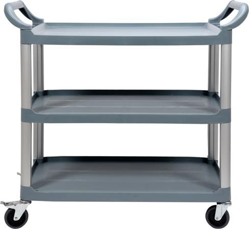 WÓZEK KELNERSKI 3-PÓŁKOWY Profesjonalny trzypółkowy wózek serwisowy YATO o wymiarach 1040 x 510 x 980 mm jest idealnym rozwiązaniem dla dużych i średnich obiektów gastronomicznych takich jak hotele i restauracje oraz firmy cateringowe. Wysoka jakość wykonania wraz z solidnymi elementami konstrukcji jest gwarancją wieloletniej bezawaryjnej pracy. Parametry Materiał: PE Odstęp pomiędzy półkami [cm]: 30 Wymiary (DxSxW) [cm]: 104 x 51 x 98 Nośność [kg]: 100 Rama wózka wykonana jest z zaokrąglonych profili aluminiowych, a blaty z wysokiej jakości polietylenu. Gwarantuje to wysokie walory użytkowania oraz łatwość utrzymania w czystości. Bez problemu można użytkować go na zewnątrz. Pod spodem każdej półki zastosowano specjalne przetłoczenia wzmacniające konstrukcję i zwiększające nośność, która może wynieść nawet do 100kg. Trzy duże półki o wymiarach 750 x 490 mm zakończone są z trzech stron specjalnym rantem o wysokości 20 mm, który zabezpiecza transportowane produkty przez ześlizgnięciem podczas przewożenia. Natomiast brak rantu frontowego ułatwia załadunek. Rozstaw między półkami to 300 mm. Wszystkie krawędzie wózka są zaokrąglone, co dodatkowo zwiększa bezpieczeństwo podczas użytkowania. Wózek wyposażony jest w 4 kółka z łożyskami, wykonane z wysokiej jakości szarego TPR. Zastosowanie twardego, a jednocześnie elastycznego materiału zapewnia bardzo cichą pracę. Kółka nie rysują posadzki, nie pozostawiają na niej śladów i są skrętne w zakresie 360°. Umożliwia to manewrowanie w trudno dostępnych pomieszczeniach i wąskich korytarzach. Dwa kółka wyposażono dodatkowo w hamulce. Wózek z obu stron posiada wygodne uchwyty do pchania. Specjalne mocowania umożliwiają w łatwy i szybki sposób zamontowanie dodatkowych pojemników YG-09104 lub YG-09105, które dostępne są w ofercie sklepu. AR9GWEYG-09100MK3S