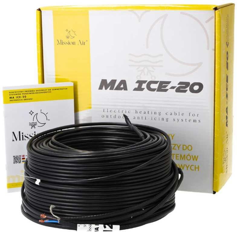 Mission Air MA ICE-20 jest przewodem stałooporowym zasilanym jednostronnie, przeznaczonym do instalacji w zewnętrznych systemach przeciwoblodzeniowych. Idealnie sprawdzi się w ochronie przed lodem i śniegiem zewnętrznych części budynków mieszkalnych oraz przemysłowych. System przeciwoblodzeniowy od Mission Air® zabezpieczy przed lodem i śniegiem: chodniki, podjazdy, parkingi, schody, rampy załadunkowe i inne zewnętrzne obszary narażone na niekorzystne warunki atmosferyczne w okresie zimowym. Przewód grzejny MA ICE-20 przeznaczony jest do montażu w betonie, asfalcie, w podkładzie sypkim i półsypkim pod kostką brukową, lub płytką kamienną. Długości od 4m do 195m gwarantują szeroki i bezproblemowy dobór odpowiedniej wersji. MA ICE-20 jest kablem grzewczym stałoporowym, o mocy jednostkowej 20W/m.