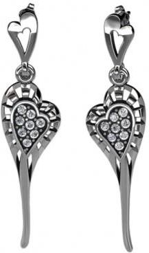 Modne Efektowne Srebrne Kolczyki Serca z Cyrkoniami Wojnicz