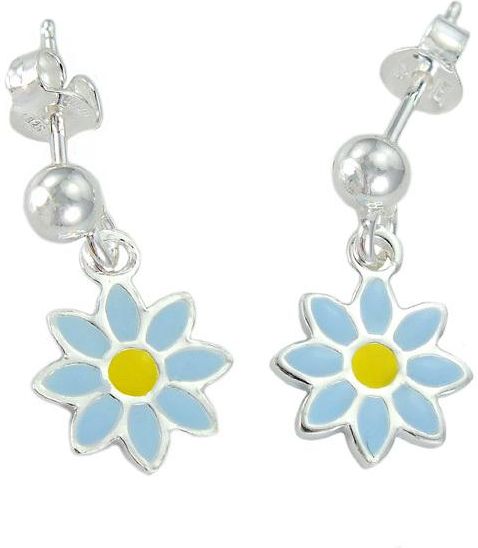 NorbiSrebro Piękne Srebrne Kolczyki Niebieskie Kwiatuszki na sztyfcie Merdające Wojnicz