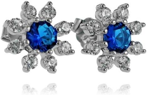 Norbisrebro Srebrne Rodowane Kolczyki Kwiatuszki z Cyrkoniami i Szafirową Cyrkonią IDTKWIAT291121 Wojnicz