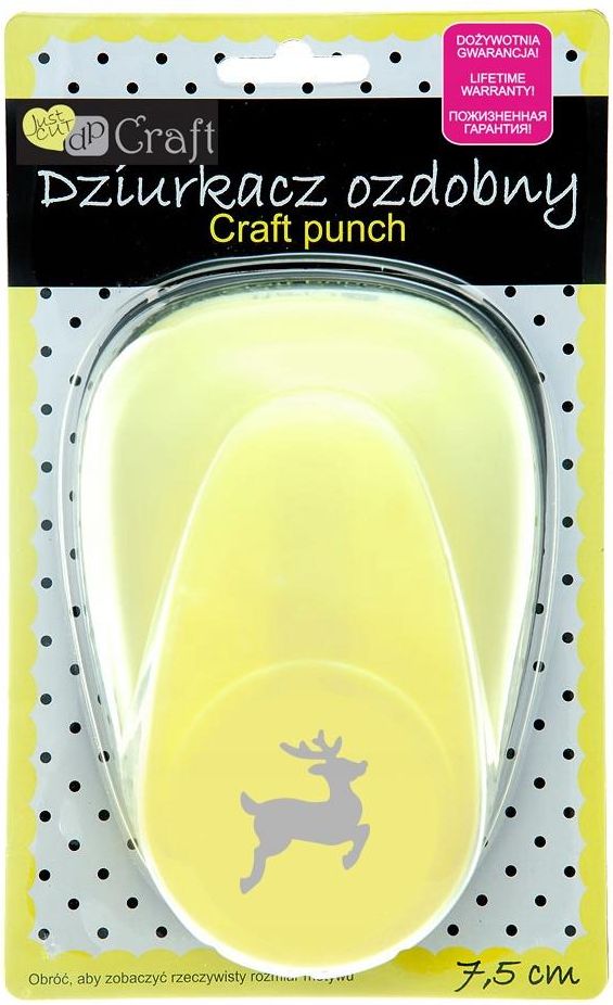 DZIURKACZ OZDOBNY 7,5CM RENIFER JCDZ-130-260 DP CRAFT Dziurkacz ozdobny w kształcie renifera to doskonałe narzędzie do kreatywnego tworzenia różnorodnych projektów DIY. Oferujący średnicę 7,5 cm, ten produkt marki DP Craft idealnie nadaje się do wycinania precyzyjnych wzorów w papierze, tekturze i innych materiałach. Dziurkacz jest łatwy w obsłudze, co sprawia, że jest idealnym rozwiązaniem zarówno dla początkujących, jak i doświadczonych rzemieślników. Dzięki solidnej konstrukcji zapewnia długotrwałe użytkowanie i doskonałe efekty pracy. Można go wykorzystać do dekoracji zaproszeń, kartek, albumów, a także do różnorodnych projektów artystycznych i rękodzielniczych. Zainspiruj się do twórczej zabawy i stwórz unikalne ozdoby dzięki temu urokliwemu dziurkaczowi w kształcie renifera. To idealny wybór na sezon świąteczny oraz na różne okazje, które wymagają odrobiny magii i estetyki.