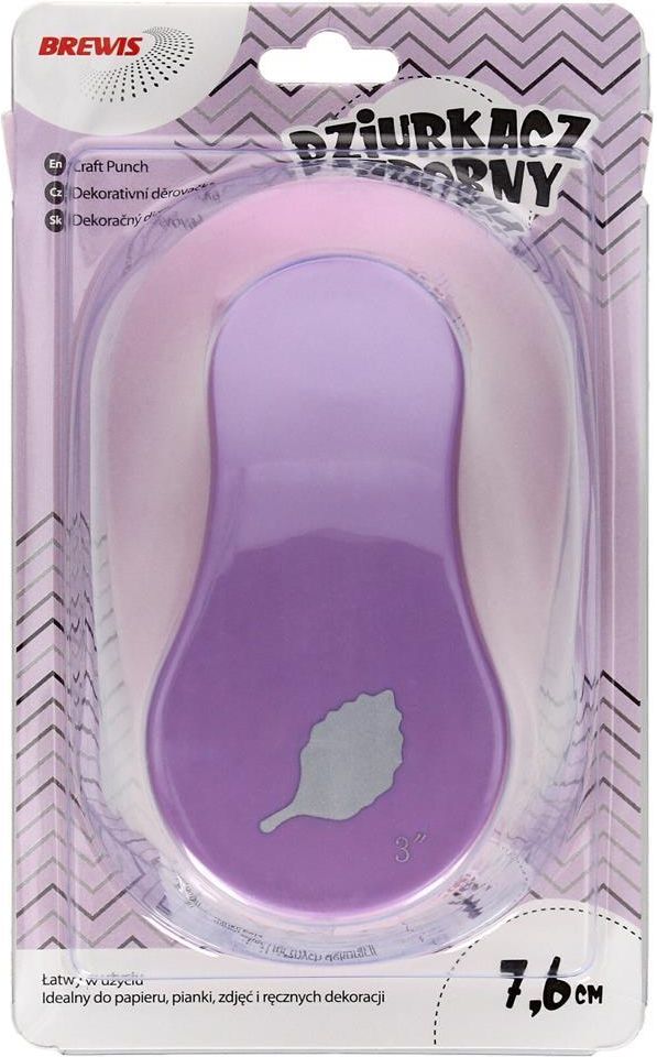 Dziurkacz ozdobny Brewis, wykrawający otwór w kształcie liścia. Prosty w obsłudze dziurkacz, który doskonale sprawdzi się w dziurkowaniu papieru lub pianki. Nieoceniona pomoc przy tworzeniu kartek okolicznościowych, ozdobnych kopert oraz różnego rodzaju dekoracji. Model: D76-47 Kształt otworu: liść Wielkość otworu: 7.6 cm