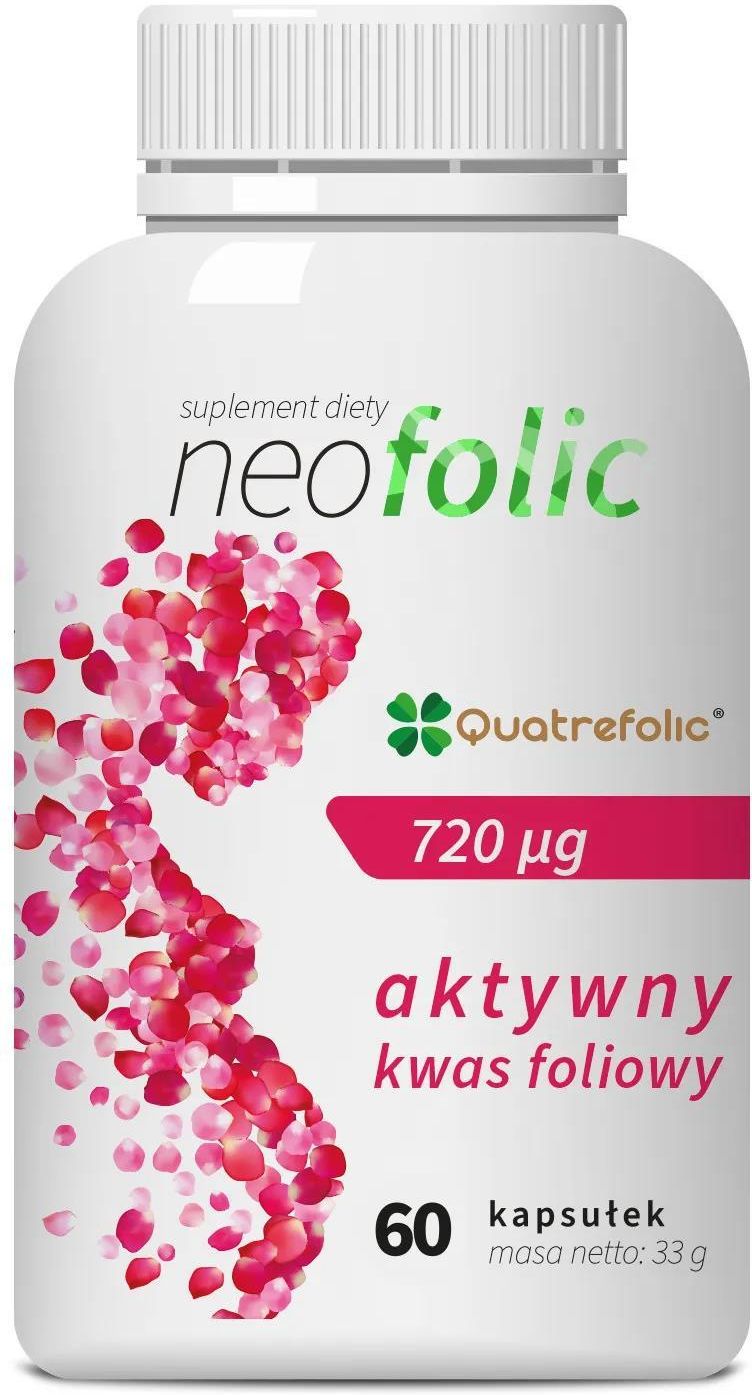 Neofolic Suplement diety z Quatrefolic® - Aktywny Kwas Foliowy (Folian) 60 kapsułek w opakowaniu Neofolic to suplement diety oparty na innowacyjnej formie Quatrefolic®, zapewniającej najwyższą biodostępność aktywnego kwasu foliowego. Zawiera on składniki niezbędne dla organizmu kobiety planującej …