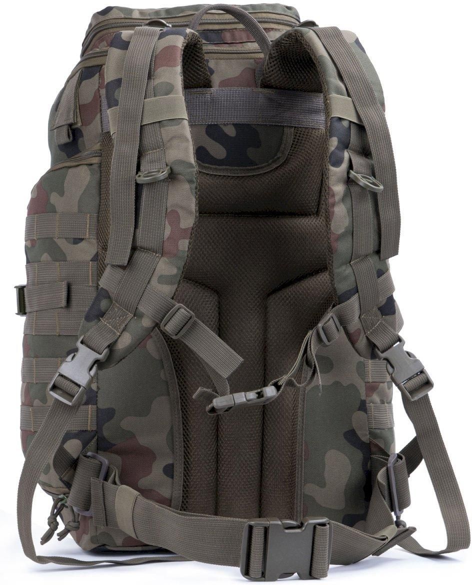 -wymiary: 55cm x 35 cm x 30cm, -pojemność: 57l, -duża komora główna z kieszenią na laptopa, -trzy zasuwane kieszenie z przodu, -dwie zasuwane kieszenie boczne, -zasuwana kieszeń na klapie górnej, -dwa otwory na rurkę camelbaka zamykane na rzep, -rozbudowany system molle, -regulowane paski mocujące dodatkowe wyposażenie, -regulowane wzmacniane szelki i pas biodrowy, -wzmocniony tylny panel zaopatrzony w solidne amortyzatory