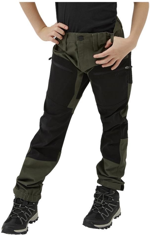 Spodnie turystyczne dla dzieci. Spodnie są wytrzymałe, wygodne i wyposażone w regulowane nogawki. Ponadto materiał jest nieprzemakalny.