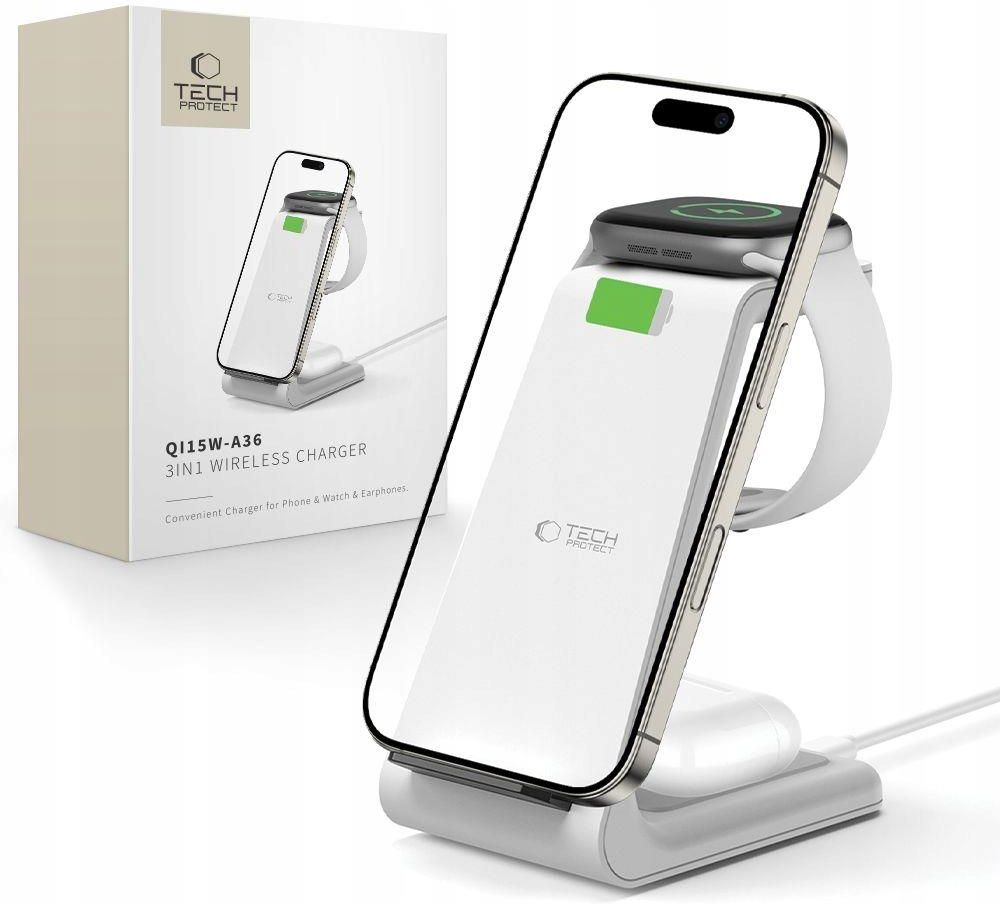 Tech-Protect QI15W-A36 3IN1 Wireless Charger For Apple White Wolbórz