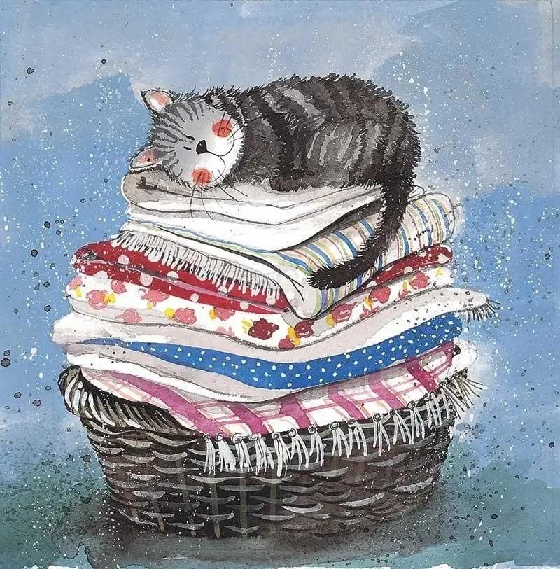 Alex Clark Karnet AC329 Kot na koszu z praniem EAN: 5063187013268 Karnet bez tekstu wewnątrz, w zestawie z brązową kraftową kopertą.