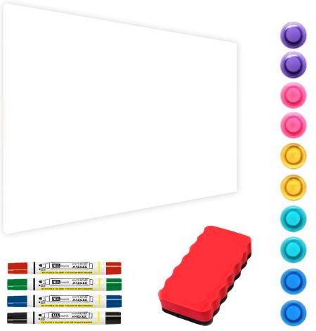 Allboards Tablica Magnetyczna Metalboards 90X60Cm Biała Allboards Tablica Magnetyczna Metalboards to funkcjonalne narzędzie, które doskonale sprawdzi się w różnych środowiskach, takich jak biura, szkoły czy domowe przestrzenie. Dzięki swoim wymiarom 90x60 cm, tablica oferuje wszechstronność w użytkowaniu, umożliwiając zarówno pisanie, jak i prezentowanie informacji. Warto zwrócić uwagę na jej magnetyczną powierzchnię, która zwiększa możliwości zastosowania, a także na dodatkowe akcesoria, które są częścią zestawu. Funkcjonalność Model Metalboards to idealne rozwiązanie dla osób poszukujących uniwersalnej tablicy. Dzięki blaszanej powierzchni magnetycznej, można na niej przyczepiać różnorodne magnesy, co sprawia, że jest to narzędzie nie tylko do pisania, ale także do prezentacji wizualnych. Tablica umożliwia korzystanie z markerów suchościeralnych, co czyni ją idealnym wyborem do dynamicznych prezentacji. W zestawie znajdują się również kolorowe markery oraz magnesy, które zwiększają funkcjonalność produktu. Wymiary i mobilność Tablica ma wymiary 90 cm szerokości i 60 cm wysokości, co czyni ją odpowiednią do różnych przestrzeni. Jej kompaktowe rozmiary oraz niską wagę wynoszącą zaledwie 1 kg sprawiają, że jest łatwa do przenoszenia i montażu. Dodatkowo, wykonana z blachy o grubości 0,5 mm, tablica jest trwała i bezpieczna w użytkowaniu, co docenią osoby ceniące sobie mobilność. Powierzchnia i użytkowanie Rodzaj powierzchni tablicy jest kluczowy dla komfortu użytkowania. Model Metalboards jest w pełni ścieralny i magnetyczny, co oznacza, że można po niej pisać markerami suchościeralnymi, a następnie łatwo ją wyczyścić. Używając gąbki lub papierowego ręcznika, można szybko usunąć wszelkie notatki, co sprawia, że tablica jest niezwykle praktyczna. Montaż Tablica została wyposażona w osiem otworów montażowych – po dwa w każdym z rogów, co umożliwia łatwe zawieszenie jej zarówno w pionie, jak i poziomie. Możliwość wykorzystania gwoździ, wkrętów czy rzepów montażowych daje dużą elastyczność w wyborze metody instalacji. Dodatkowo, staranne wykończenie zapewnia bezpieczeństwo użytkowania, eliminując ryzyko ostrych krawędzi. Design i estetyka Model Metalboards to nie tylko funkcjonalne narzędzie, ale również stylowy element dekoracyjny. Jego nowoczesny design oraz realistyczny wygląd sprawiają, że doskonale prezentuje się w różnych wnętrzach. Dzięki zastosowaniu nowoczesnych metod produkcji, kolory na tablicy są nasycone i trwałe, co pozwala na zachowanie idealnego wyglądu przez długi czas. Kluczowe cechy produktu Oto najważniejsze cechy tablicy Metalboards: Rodzaj: magnetyczna, suchościeralna, Wymiary: 90 cm x 60 cm, Waga: 1 kg, Materiał: blacha o grubości 0,5 mm, Powierzchnia: łatwa w czyszczeniu i ścieralna, Montaż: osiem otworów montażowych w rogach, Akcesoria w zestawie: gąbka, markery (4 kolory) oraz 10 różnokolorowych magnesów.