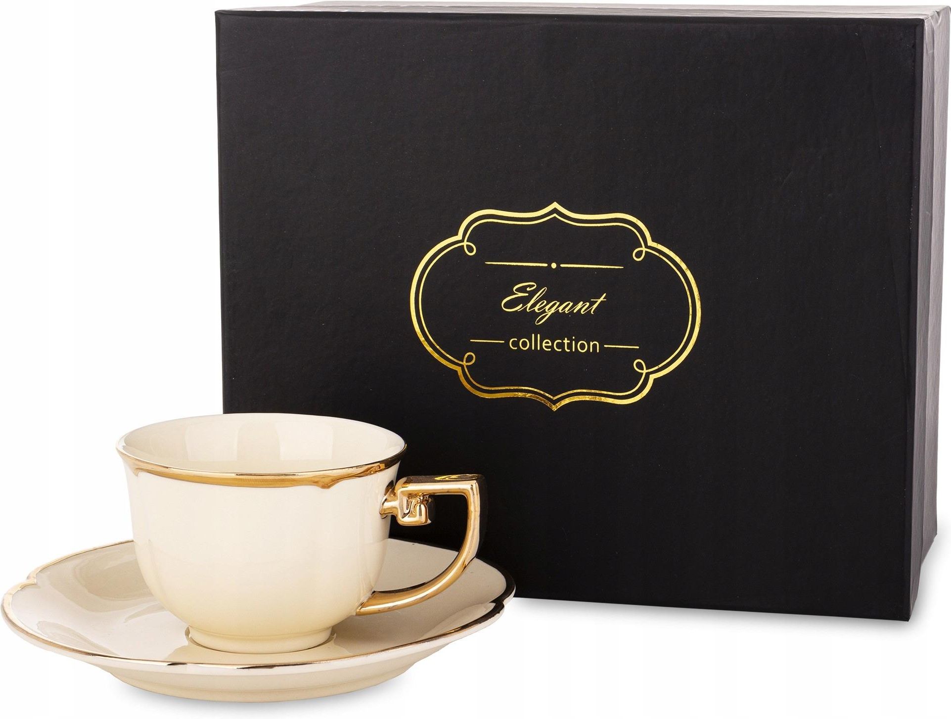 Artpol Filiżanka Ze Spodkiem Z Porcelany Beżowo Złota W Ozdobnym Opakowaniu 176551 Wolbrom