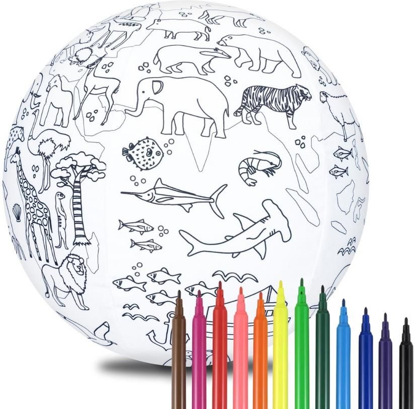 Piłka Globus kontynenty do kolorowania zestaw z pisakami Centrum Akson Jedyna taka na Allegro Jedyna taka, niepowtarzalna piłka globus z zaznaczonymi konturami kontynentów i zwierząt na nich występujących. Wraz z zestawem pisaków dostarcza, zarówno dzieciom jak i dorosłym, mnóstwo frajdy ! Z czego …