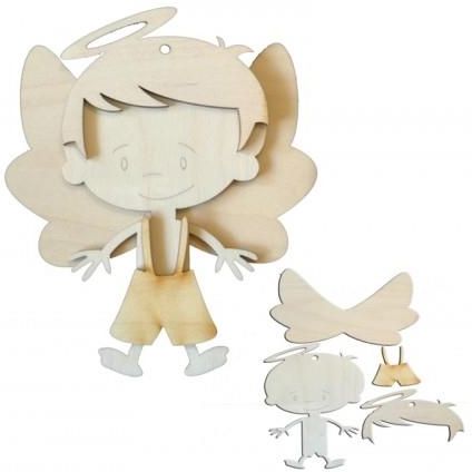 Aniołek chłopiec - do sklejania 15x17 cm Deku 006209 Uroczy chłopiec aniołek wykonany ze sklejki z chęcią przyozdobi Twoje mieszkanie. Zawieszka składa się z 4 części, które można pomalować wedle własnej fantazji, a następnie skleić poszczególne elementy. Świetnie nada się jako ozdoba na świąteczną …