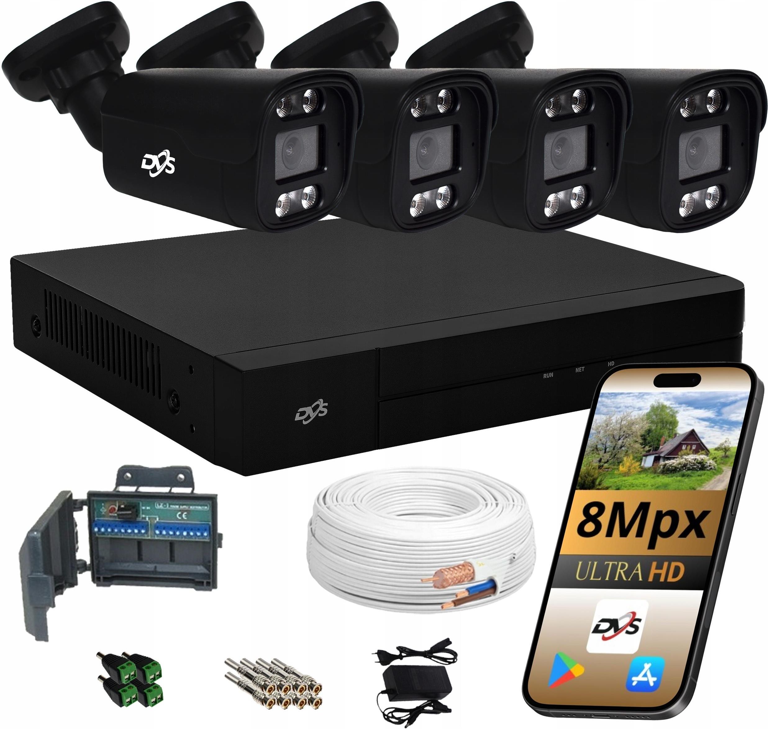 Dvs Zestaw Do Monitoringu Zewnętrzny 4 Kamery 8Mpx Czarne Analogowe Dual Ir Wolbrom
