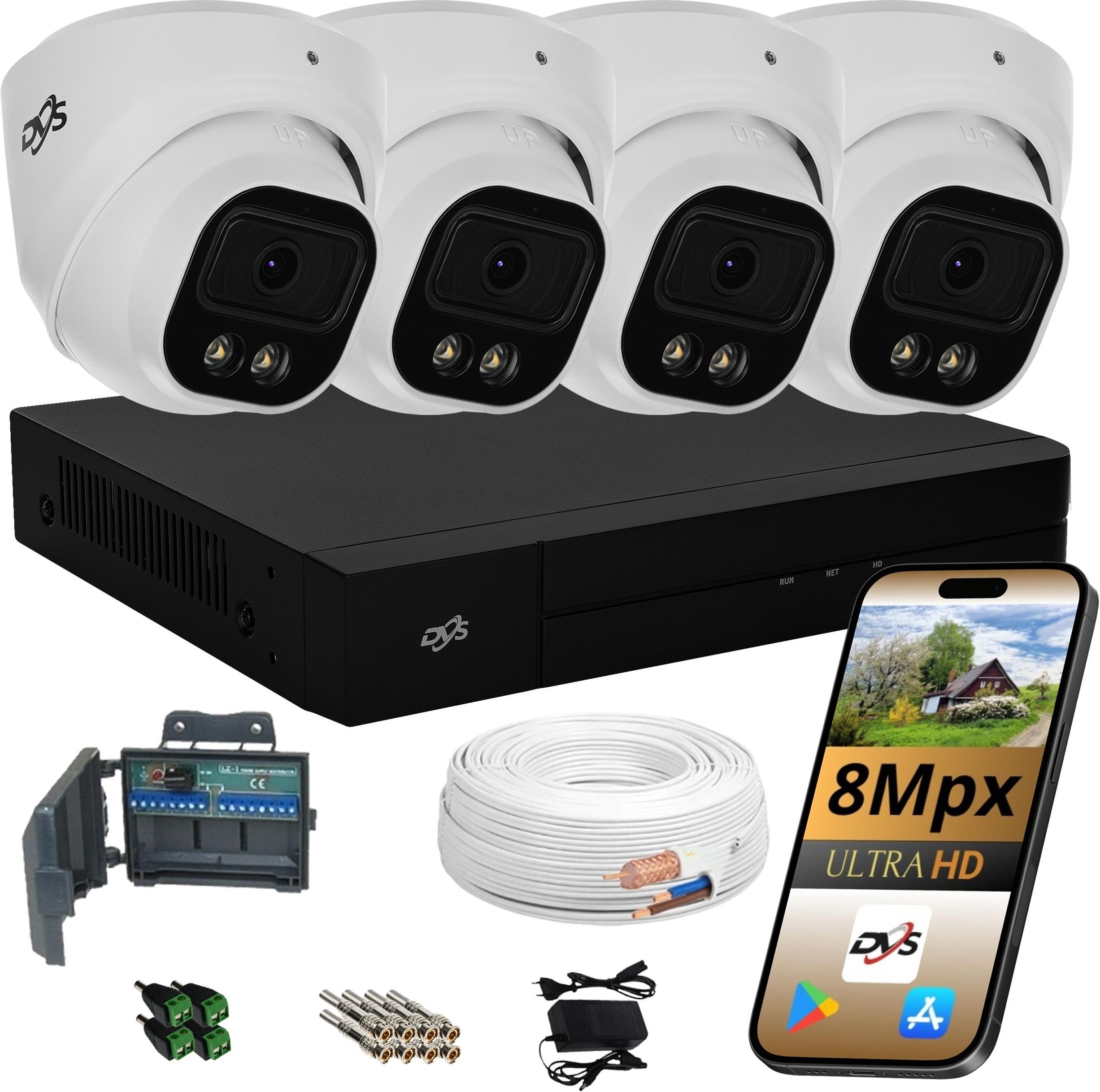 • ZEWNĘTRZNY ZESTAW 4 KAMER ANALOG DVS KOPUŁKA 8MPX
