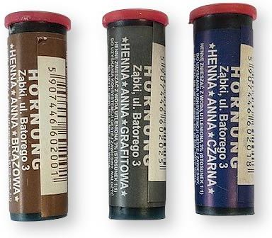 Tradycyjna henna proszkowa o wysokich właściwościach krycia. Sekretem doskonałej jakości henny proszkowej - Anna jest fakt, że jej receptura przechodzi z pokolenia na pokolenie a jej wynalazca, inżynier Antoni Hornung był jednym z najlepszych chemików przedwojennej Polski. Henna wystepuje w 3 kolorach - czarna, brązowa, grafitowa - przed dodaniem do koszyka prosimy o wwybór koloru. Henna proszkowa - Anna charakteryzuje się: • wysoką jakością - posiada atest MZiOS-KS249 • dostępnością w tradycyjnych trzech kolorach (czarny, brązowy i grafitowy) • wydajnością • doskonałym kryciem Przeznaczenie: Henna proszkowa - Anna grafit przeznaczona jest do farbowania brwi i rzęs. Czas działania: henna bardzo szybko barwi na ładny grafitowy kolor (nie jest niebieskawy) • brwi – nakładamy na chwilę i zmywamy • rzęsy – zmywamy po ok. 10 min. (dla dyskretnego pokrycia rzęs u mężczyzn) Waga: 2 g