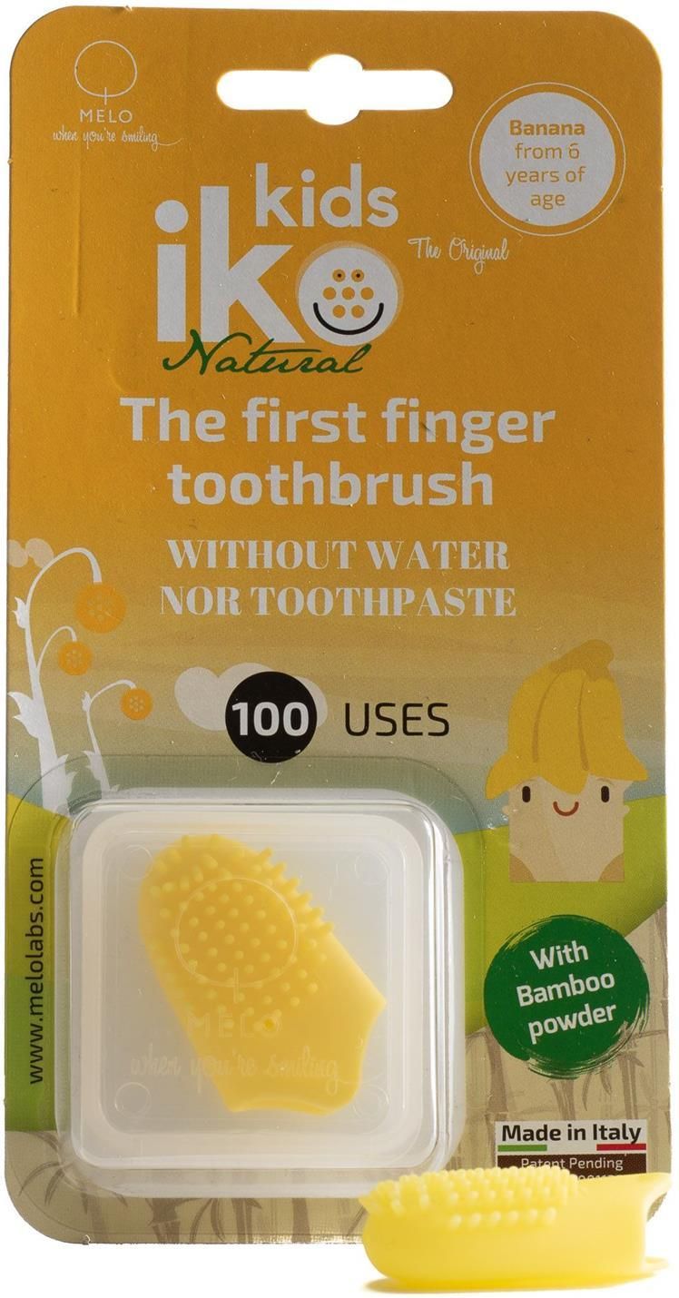 IKO KIDS Natural szczoteczka na palec bananowa Szczoteczka na palec dla dzieci powyżej 6 roku życia IKO, to miękka w dotyku, silikonowa nakładka na palec wyposażona w wypustki, które wyczyszczą Twoje zęby i delikatnie wymasują dziąsła. Opatentowany polimer uwalnia fluorek przy każdym użyciu i utrzymuje czyste zęby, zdrowe dziąsła i świeży oddech. Jednocześnie zawarty w niej proszek bambusowy w naturalny sposób zapobiega odkładaniu się kamienia nazębnego i rozwojowi próchnicy. Nasączone naturalnymi olejkami antyseptycznymi pozwolą Ci szybko i wygodnie odświeżyć jamę ustną i pozbyć się nieświeżego oddechu bez użycia wody i pasty do zębów! Jej niepodważalna rewolucyjność została potwierdzona pod koniec 2016, gdy zaczęła regularnie podróżować z kosmonautami NASA. Doskonale radzi sobie na międzynarodowej stacji kosmicznej, w podróży, w szkole na biwaku i wszędzie tam, gdzie ciężko umyć zęby po posiłku. Dodatkowo naturalny aromat owocowy powoduje ze dzieci chętniej z niej korzystają. Szczoteczka zbiera doskonałe recenzje wśród stomatologów dziecięcych oraz rodziców, ponieważ brak konieczności wody znakomicie ułatwia codzienną higienę w szkole, w parku na wycieczce i w podróży. Uwaga, to nie jest to samo, co szczoteczka na palec dla niemowląt i dzieci, ten produkt rekomendowany jest dla dorosłych i dzieci od 6 roku życia. ZAWSZE PO POSIŁKU POZA DOMEM Produkt dostępny w różnych wariantach smakowych: aromat bananowy, zielonego jabłka, truskawki i pomarańczy. Nie wymaga użycia wody i pasty. W wygodnym, małym i higienicznym etui do przechowywania. Po prostu nałóż, wyszczotkuj i uśmiechaj się. Jej skuteczność potwierdzają stomatolodzy i farmaceuci we Włoszech, Szwajcarii oraz USA. Zapewnia czystość i świeżość bez zbędnej chemii i nie zawiera SLS, PEG i chloru i fluoru. Sposób użycia Używaj do czyszczenia zębów i języka. Umieść IKO na palcu i czyść zęby i dziąsła przez dwie minuty. To będzie łatwe i przyjemne! Po użyciu nie jest potrzebne płukanie. Używaj pod nadzorem osoby dorosłej. Wymień przy pierwszych znakach uszkodzenia lub gdy poczujesz że straciła swój zapach. Do 100 użyć. Należy wymienić bezzwłocznie gdy zauważysz pierwsze oznaki uszkodzenia lub utraty smaku a co za ty idzie swoich właściwości czyszczących i antybakteryjnych.