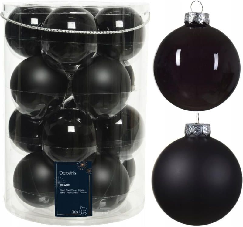 Kaemingk Zestaw 16 Czarnych Szklanych Bombek Choinkowych 8Cm Błyszczące Matowe Wolbrom