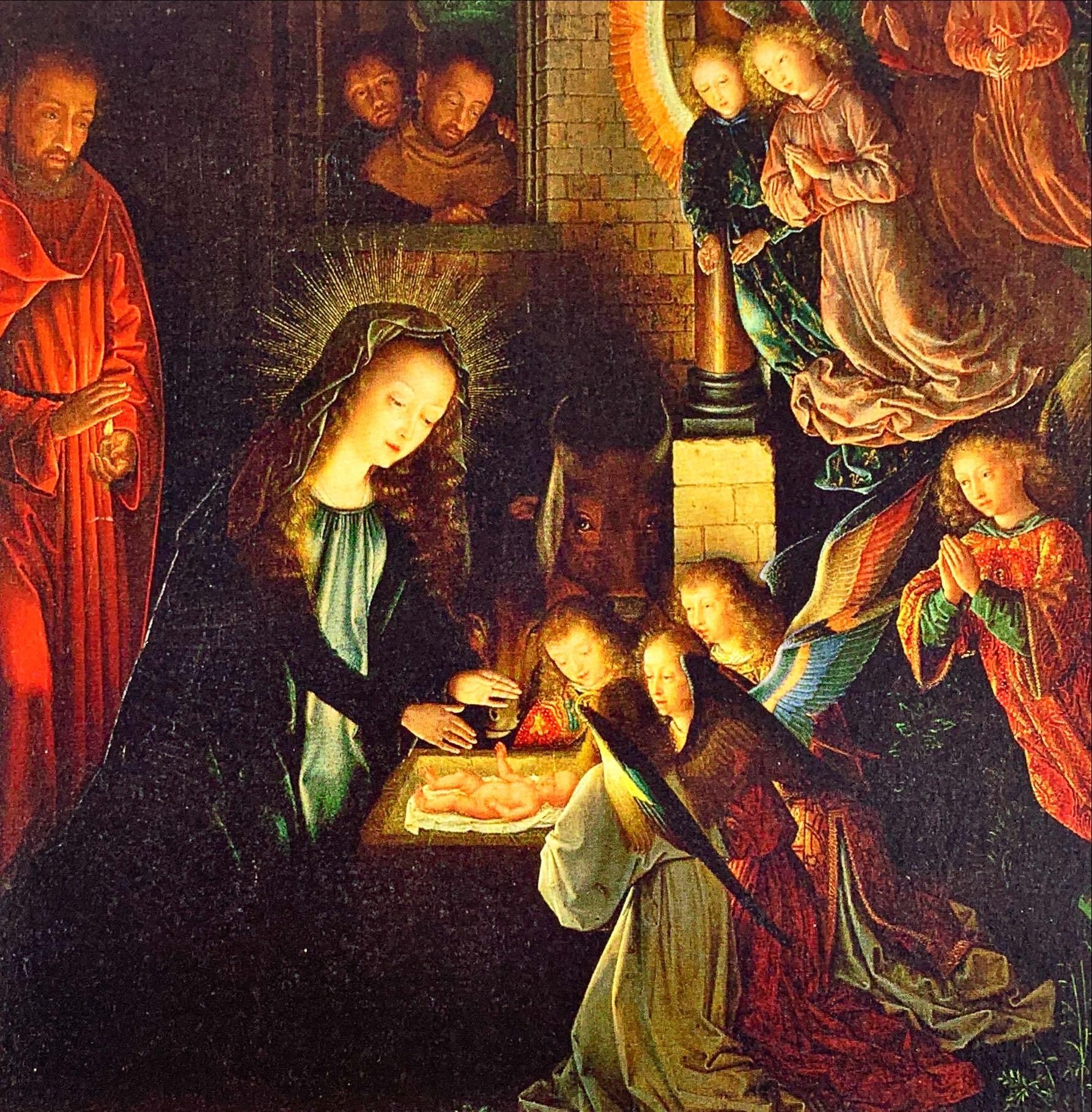 Seria kartek świątecznych z obrazami mistrzów pędzla Na pierwszej stronie kartki wykorzystano fragment obrazu Boże Narodzenie Gerarda Davida (1495). W środku natomiast znajduje się fragment kolekty na Uroczystość Narodzenia Pańskiego z Mszy w nocy. Kartka wydrukowana jest na papierze upcyklingowym …