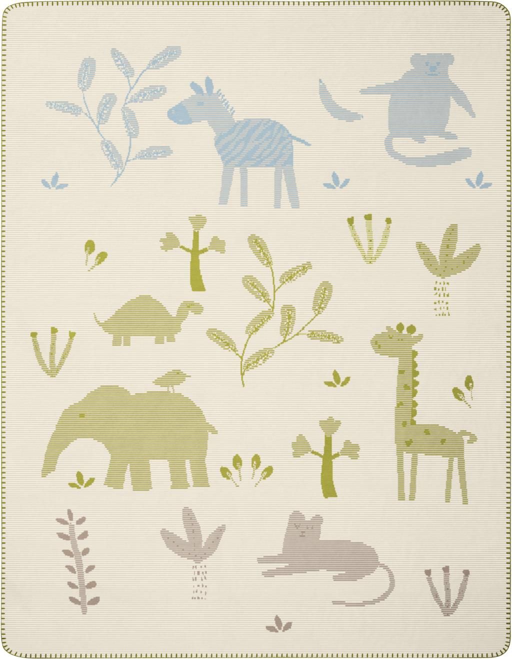Kocyk dziecięcy przedstawiający zwierzęta na safari.