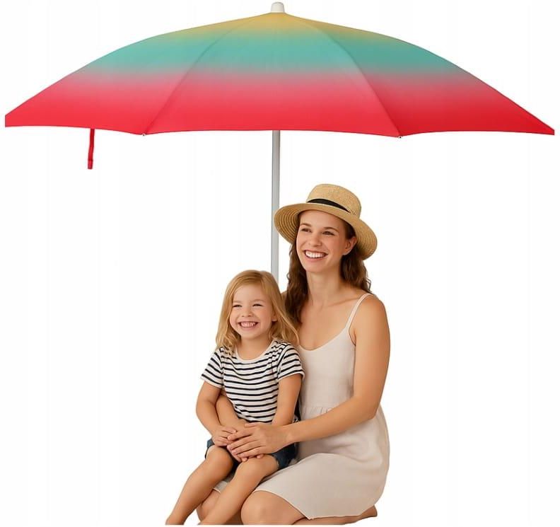 Parasol plażowy ogrodowy 180cm Kolorowa Ochrona Przed Słońcem z UV 50+ Szukasz parasola, który będzie nie tylko funkcjonalny, ale też przyciągnie wzrok swoim wyglądem? Parasol Plażowy Ogrodowy Rainbow o średnicy 180 cm to doskonały wybór na lato! Zapewnia skuteczną ochronę przed słońcem dzięki filtrowi UV 50+, a jego tęczowa kolorystyka doda radości każdemu miejscu – od plaży, przez ogród, aż po taras. Lekki, łatwy w transporcie i niezwykle praktyczny – ten parasol sprawdzi się w każdej wakacyjnej sytuacji. Zalety Efektywna ochrona przed słońcem – dzięki filtrowi UV 50+ Żywa, kolorowa stylistyka – tęczowy design poprawia nastrój Uniwersalne zastosowanie – plaża, ogród, balkon, kemping Łatwa regulacja nachylenia – pełna kontrola nad kierunkiem cienia Mobilność i lekkość – łatwy do przenoszenia i przechowywania Stabilna konstrukcja – odporna na lekkie podmuchy wiatru Parametry Średnica czaszy: 180 cm Wysokość maksymalna: 190 cm Materiał czaszy: Trwały poliester w żywych, tęczowych kolorach Stelaż: Wytrzymały metalowy – gwarantuje stabilność w różnych warunkach Ochrona przeciwsłoneczna: Filtr UV UPF 50+ – zabezpiecza skórę przed promieniowaniem Regulacja kąta nachylenia: Tak – łatwe dostosowanie do pozycji słońca Waga: Tylko 1,15 kg – idealny do podróży i pikników Pokrowiec transportowy: W zestawie – wygodna torba z uchwytem