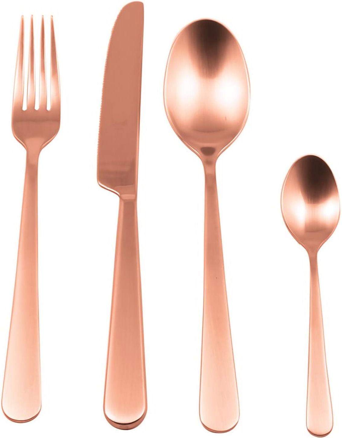 Szczotkowany zestaw sztućców 24 el. Stoccolma w kolorze miedzianym. Wykonany ze stali nierdzewnej. Minimalistyczny design inspirowany projektami m.in. A.Mangiarottiego. Dla 6 osób.