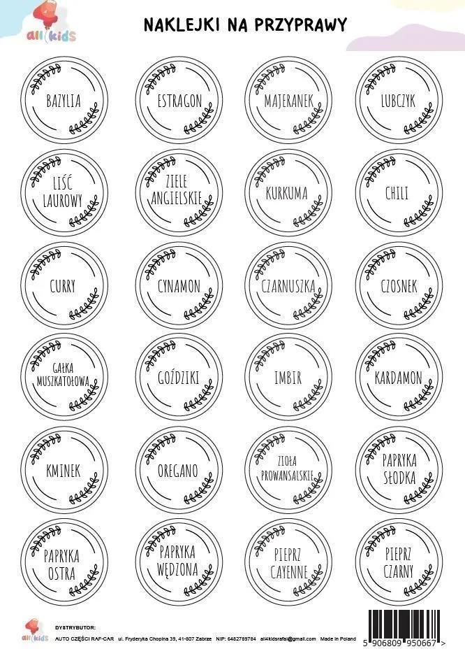 Naklejki na Przyprawy - Porządek i Styl w Twojej Kuchni!Nasze naklejki na przyprawy to praktyczny i elegancki sposób na organizację kuchni. Dzięki nim szybko znajdziesz potrzebną przyprawę, a Twoje słoiczki i pojemniki zyskają estetyczny wygląd. Szeroki wybór nazw przypraw - obejmuje zarówno …