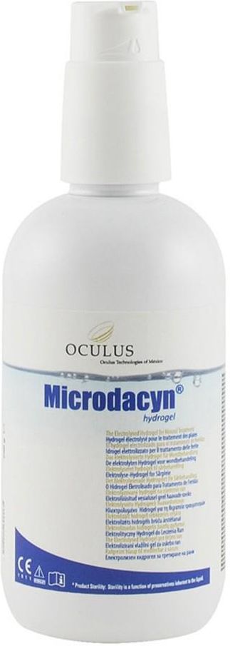 Microdacyn60 Hydrogel Wyrób medyczny w formie roztworu o szerokim działaniu przeciwdrobnoustrojowym przeznaczony do odkażania i płukania ran ostrych oraz przewlekłych takich jak owrzodzenia goleni, odleżyny, rany w przebiegu zespołu stopy cukrzycowej. Microdacyn wspomaga oczyszczanie autolityczne rany z martwicy oraz stwarza odpowiednie środowisko gojenia. Microdacyn Hydrogel to zaawansowany preparat leczniczy, który dzięki swojej unikalnej, gęstej formule idealnie przylega do uszkodzonych tkanek i pozostaje na nich znacznie dłużej niż standardowe roztwory. Jego kluczowym zadaniem jest wspieranie naturalnego, autolitycznego oczyszczania rany przy jednoczesnym zachowaniu pełnego bezpieczeństwa dla zdrowych komórek organizmu. Żel wykazuje niezwykle szeroką skuteczność przeciwdrobnoustrojową, skutecznie eliminując bakterie, wirusy, grzyby oraz ich zarodniki, a co ważne, jego regularne stosowanie nie prowadzi do wytworzenia oporności u drobnoustrojów.