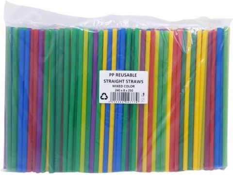 Słomki proste "REUSE" 240 mm średnica 8 mm – mix kolorów, 250 szt.Wielorazowe słomki proste REUSE o długości 240 mm i średnicy 8 mm to ekologiczna alternatywa dla tradycyjnych słomek jednorazowych. Wykonane z trwałego tworzywa przeznaczonego do wielokrotnego użytku, idealnie sprawdzają się w barach, kawiarniach, restauracjach i na imprezach plenerowych. Kolorowy mix nadaje napojom nowoczesny i estetyczny wygląd.Cechy produktu:– Długość: 240 mm– Średnica: 8 mm– Kolor: mix kolorów– Rodzaj: proste, wielorazowe– Materiał: tworzywo REUSE– Opakowanie: 250 sztuk– Kod produktu: 49.0065.07044758– EAN: 5206492023779Zastosowanie:Idealne do napojów zimnych i ciepłych, smoothie, koktajli, lemoniad i drinków. Przystosowane do mycia i wielokrotnego użycia – przyjazne środowisku i zgodne z ideą less waste.